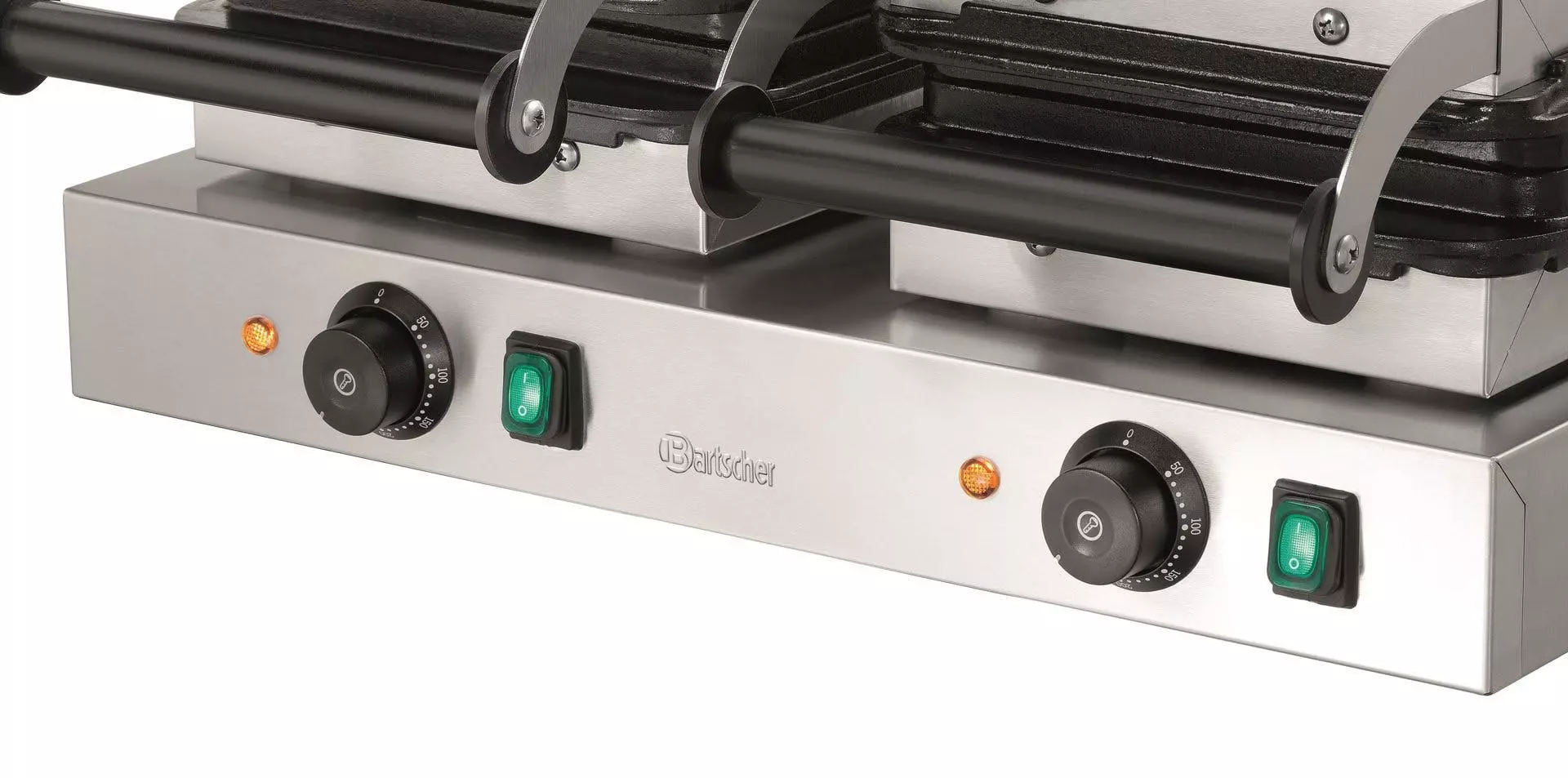 Das Waffeleisen mit 2 Backeinheiten in Brüsseler-Waffelform überzeugt nicht nur durch die hohe Wärmeleitfähigkeitt der gusseisernen Backplatten, die robuste Auührung und die Leistungsstärke. Die beiden separaten Ein-/Ausschalter ermöglichen zudem eine unkomplizierte sowie bedarfsgerechte Nutzung.