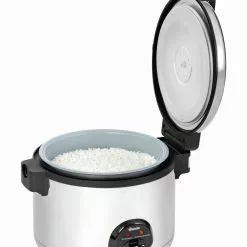 9Ltr. Trockene Reiskapazität – Deckel und Gehäuse aus Edelstahl – Einfach zu reinigen – 27Ltr./108 Portionen gekochte Reiskapazität – Herausnehmbarer und antihaftbeschichter Innentopf für häufige Nutzung – Warmhaltefunktion – 9Ltr – Maße: 41,5(H) x 48(B) x 56(Tcm – Material: Edelstahl