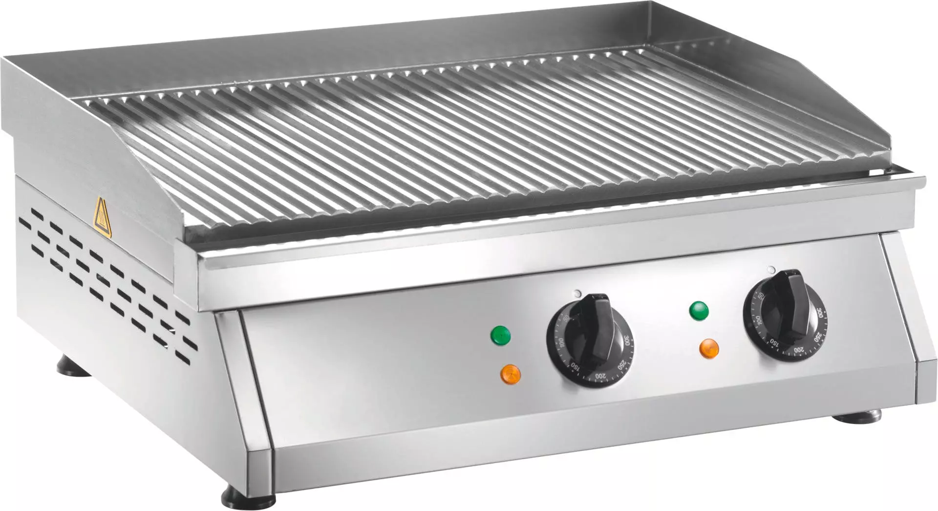 > Gehäuse aus Edelstahl > Grillfläche aus Edelstahl > Grillfläche: 595 x 400 mm > Temperaturbereich: 0°C bis 300°C > mit Fettauffangschublade > 2 Heizzonen