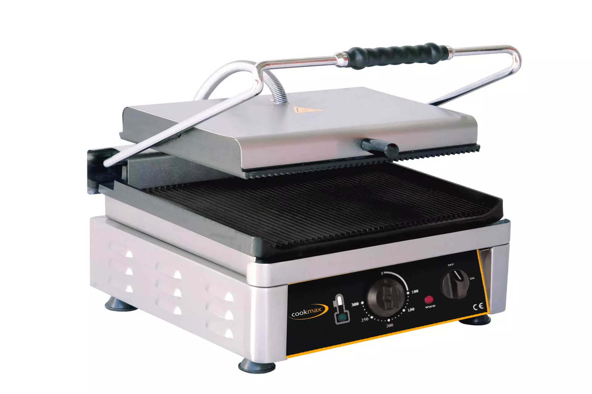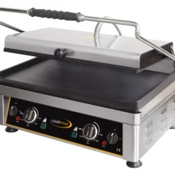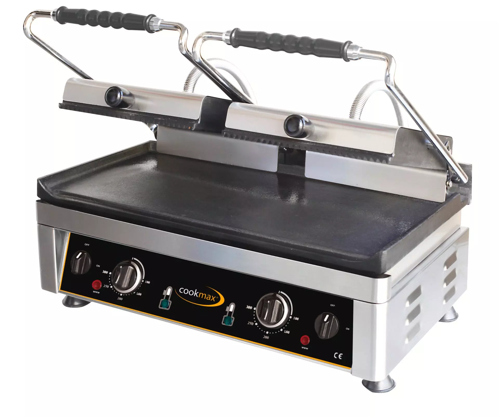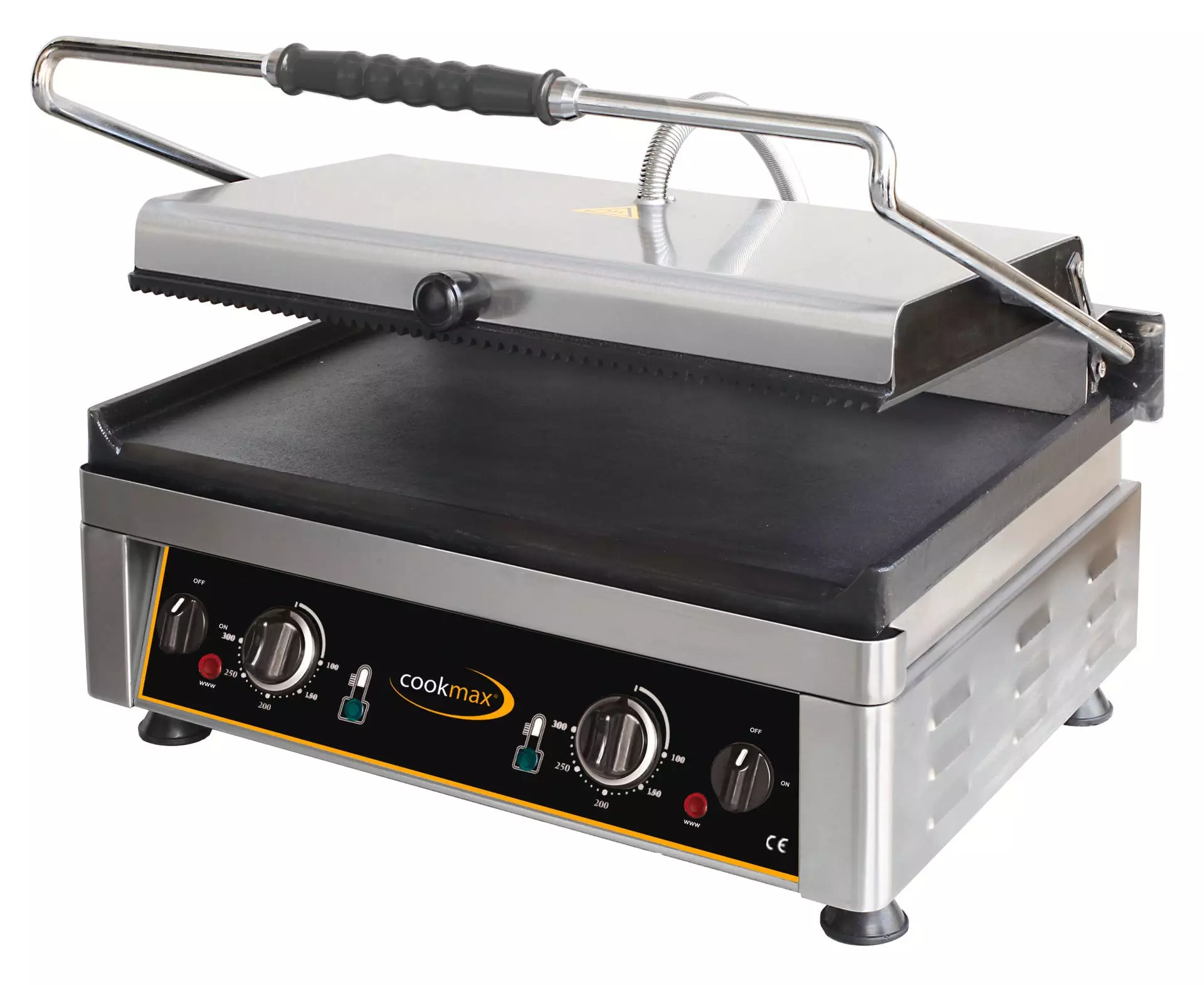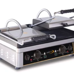 > Grillfläche 520 x 240 mm > Edelstahlkorpus, Guss-Grillfläche > Temperatur stufenlos bis 300°C > mit Fettauffangschale, Kontrollleuchte > Ein- / Ausschalter > Temperatur getrennt regelbar, rechts/links