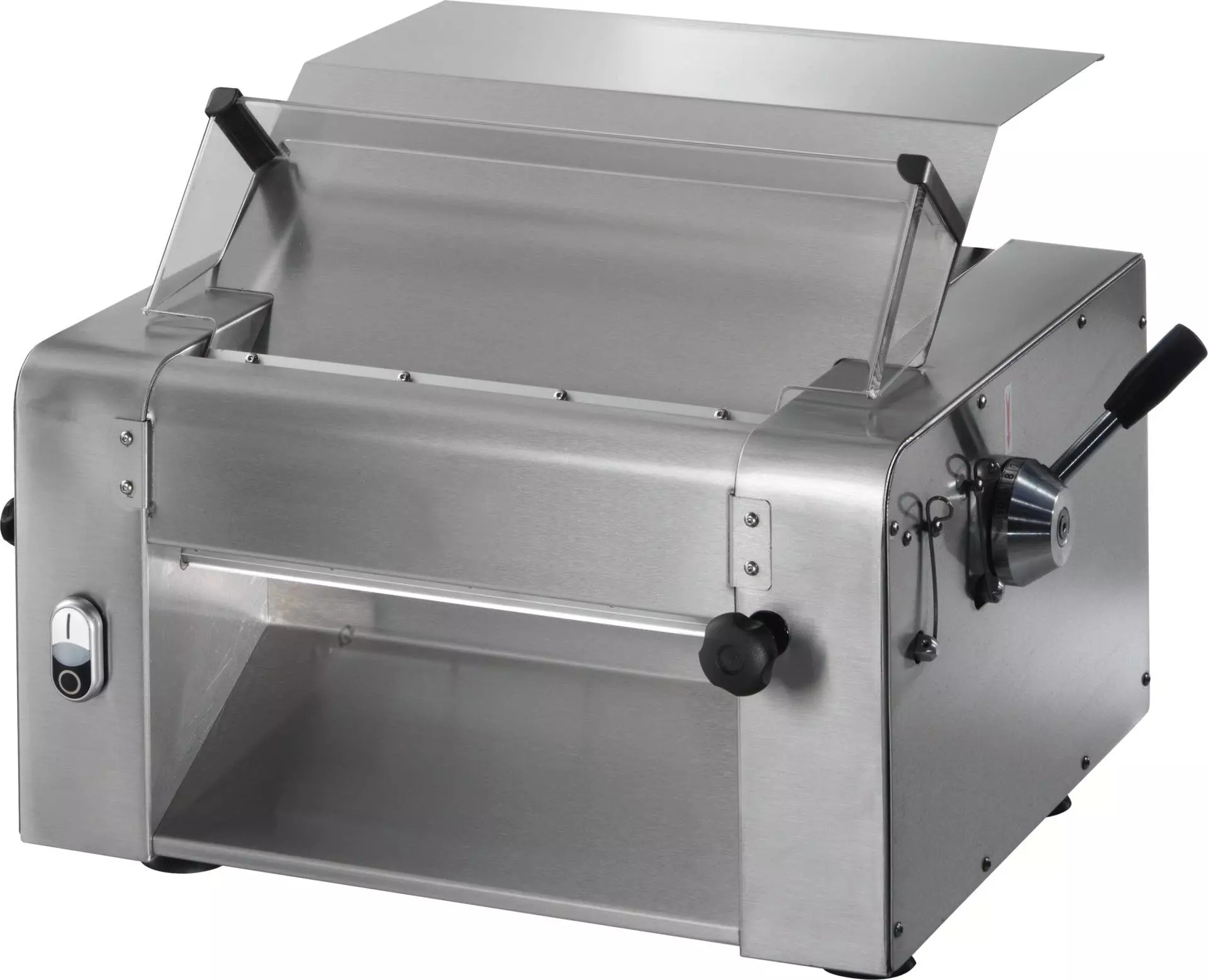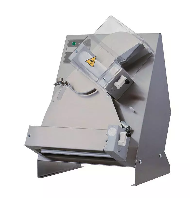 > Rollenlänge: 350 mm > Walzenöffnung: 1-4 mm > zum Ausrollen von Pizza-, Brotteig etc. > Gehäuse komplett aus Edelstahl > Walzen lebensmittelgeeignet > Walzenabstand regulierbar > Riemengetriebe > optional: Fußpedal