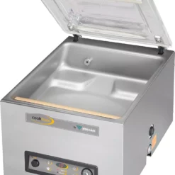 > 21 m³/h Busch Vakuumpumpe > Vakuum-Sensorsteuerung > Kammer aus Edelstahl 420 x 460 x 180 mm > max. Beutelgröße 400 x 500 mm > Schweißbalkenlänge 420 mm > Doppelschweißung > Zyklusdauer 20 – 45 Sekunden > benötigt glatte Beutel > inkl. 3 Einlegeplatten