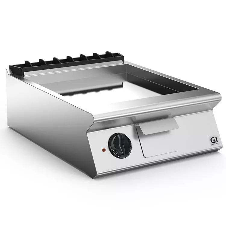 Gastro-Inox 700 “High Performance” Elektro-Grillplatte sind in verschiedenen OberflächenausfĂĽhrungen erhältlich, d.h. Edelstahl, Edelstahl und verchromt, aber auch glatt, komplett gerippt oder 2/3 glatt und 1/3 gerippt. Die Grillplatte haben eine kurze Aufheizzeit, eingebaute Auffangwanne, stufenlos thermostatisch regelbar von 0°C – 300°C pro Zone, Sicherheitsthermostat. und sind leicht zu reinigen.