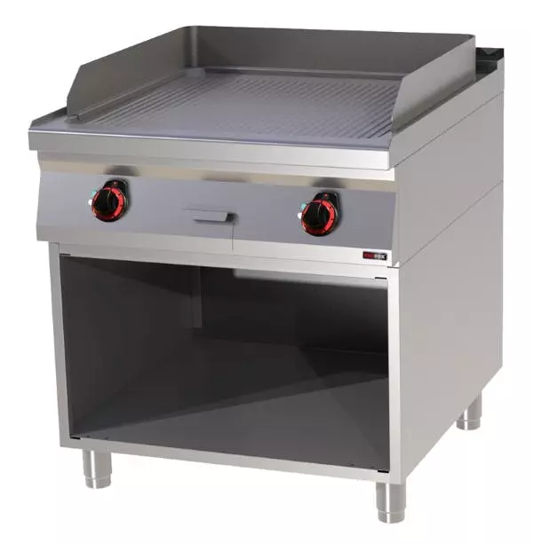Griddleplatte, glatt, 400x900x900 mm, Platte aus Edel- stahl (15 mm dick), Arbeitsfläche 310x650mm, 50°C-300°C, 400 V, 3N / 50 Hz, 6 kW, 71 kg, mit Fettschublade, Tür nachrüstbar