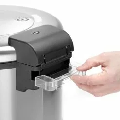 Geeignet für 30 Tassen (180 ml) Trockenreis. Kocht Reis und hält ihn automatisch warm. Inklusive Messbecher, Reislöffel und Silikon-Antihaftpolster. Bei Warmhalten werden auch die Seiten der Pfanne erwärmt.