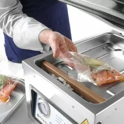 2-lagig, Innenschicht 60 ”m lebensmittelechtes Polyethylen, AuĂenschicht 15”m Polyamid (Nylon). Die Gesamtdicke betrĂ€gt 75 ”m. Die verwendeten Materialien wirken wie ein UV-Filter. Das PrĂ€gen verbessert den Luftstrom aus dem Beutel wĂ€hrend des Vakuumverpackungsprozesses. Beutel können bei Temperaturen von -20° bis 100°C eingesetzt werden. Geeignet fĂŒr Kammer- und externe Vakuumverpackungsmaschinen.