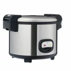 Der METRO Reiskocher GRC1950 (1950 W) hat ein Fassungsvermögen von 12 l (z.B. Reis). Das Produkt verfügt über einen Innentopf mit einem Durchmesser von 34,7 cm und ist aus matt lackiertem Edelstahl 201 gefertigt. Der Deckel hat eine Sicherheitsverschluss und der Innentopf ist mit einer 2-fach Antihaftbeschichtung versehen. Die Griffe bestehen aus schwarzem Kunststoff. Das Produkt hat eine Größe von 35 x 48 x 39 cm (H x B x T). Griffe aus hitzebeständigem Kunststoff. Inklusive Löffel und Messbecher Abmessungen (B x H x T): 48 x 35 x 39 cm