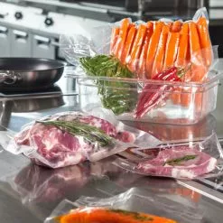 Die Vakuumierbeutel von METRO Professional haben die Maße (L x B): 35 x 25 cm. Jede Verpackungseinheit besteht aus 100 Beuteln. Das Produkt ist bis zu 100°C (bei einer Dauer von max. 4 h) hitzebeständig und hält Temperaturen von -40°C stand. Nur für Kammer-Vakuummaschinen geeignet. Geeignet für Schockfroster (-40°C). Für die Langzeitkonservierung. Hergestellt aus Polyamid (PA) und Polyethylen (PE).