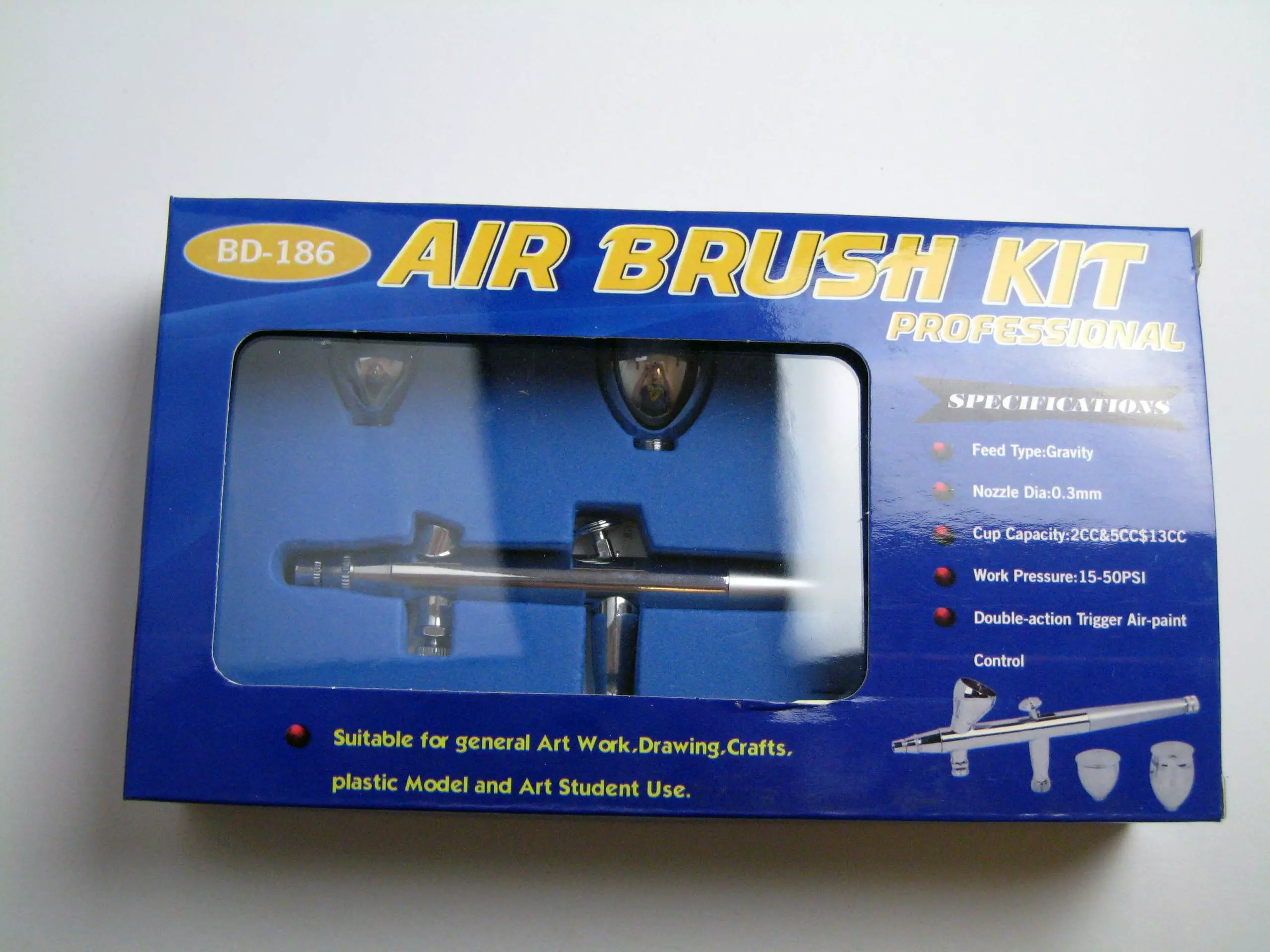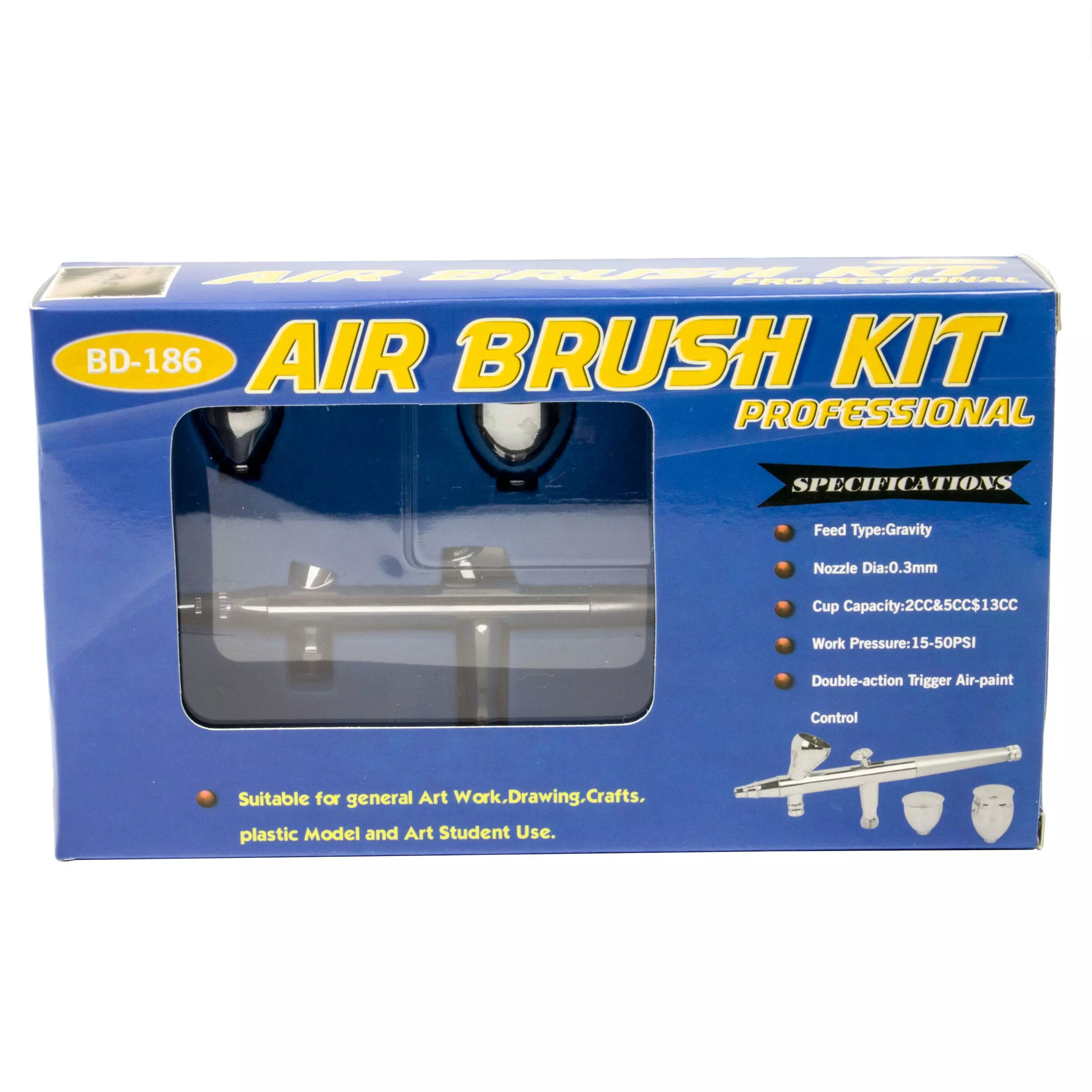 - Die Spritzpistole ABC-186 ist ein professionelles Gerät mit Double-Action-Technik für den Modellbauer, Grafiker oder Retuscheur. Die Pistole ist mit einer 0,30 mm Düse ausgerüstet und eignet sich daher für feinste Detailarbeiten wie feine Linien, technische Illustrationen, kleine tonverlaufende Flächen oder Arbeiten an Masken. Geeignet für feinstpigmentierte Farben, Lasur- und Wasserfarben. Mit 3 aufschraubbaren Bechern. Sowie bedingt für Lösemittelhaltige Farben. Gewindeanschluss G1/8 Zoll
