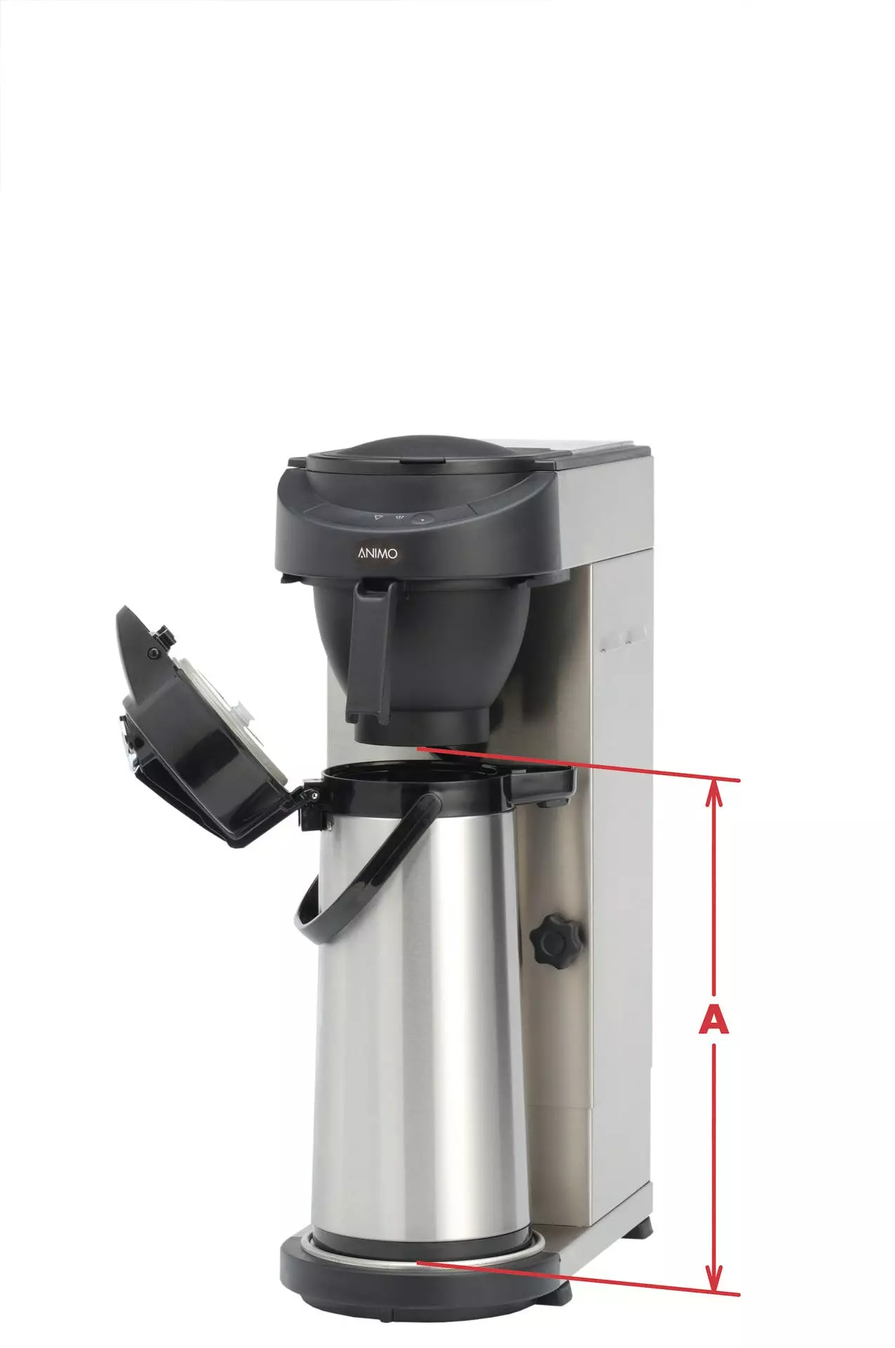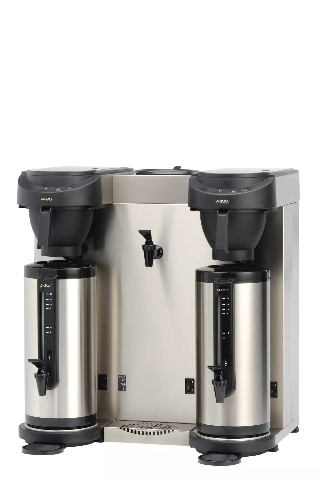 Animo Filterkaffeemaschine MT200W > mit Wasseranschluss > für die Brühung direkt in einem Thermobehälter > mit eingebautem Heißwasserkocher > inkl. Tropfgitter > Auslieferung mit einem Thermobehälter 2,40 l > Stundenleistung Kaffee: 112 Tassen (14,00 l)