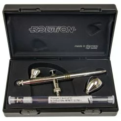 Evolution Silverline solo 126023 Airbrush Pistole Solo ist das Einsteigermodell der Evolution-Reihe. Wer nach einer richtigen Profi Airbrush sucht, kann sich ruhigen Gewissens für die Evolution Silverline entscheiden. Sie bietet ein exzellentes Handling bei durchweg hoher Verarbeitungsqualität. Alles an der Konstruktion dieser Airbrush wurde genau durchdacht und erfüllt ohne Probleme seinen Dienst. Dies spiegeln vor allem die durchweg positiven Kundenfeedbacks wieder.