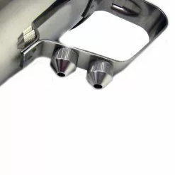 Soßen Giesser Konfektionierer aus Edelstahl 18/10 für flüssige Confertüre und andere Medien Fassungsvermögen 1,25 Liter, zudem kann je nach Konsistenz zwischen drei verschiedenen Füllspitzen gewählt werden.
