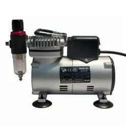 ölfrei, wartungsfrei, leistungsstark, leichtgewichtig, leiser Kompressor arbeitet vollautomatisch und weitgehend pulsierungsfrei. Mit echtem Druckminderer und Manometer. Ideal für NailArt, Tattoos, Modellbau oder einfach nur so zum airbrushen.