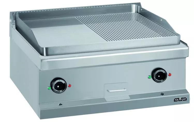 - ½ glatte + ½ gerillte hartverchromte Grillfläche (BxT): 650 x 570 mm