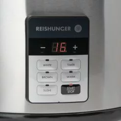Schonend gegarter Reis für 25-32 Personen, das entspricht ca. 4,5 kg Reis. Die Einstellung der 3 Modi ist intuitiv über eine Bedienfeldanzeige. Dank Timerfunktion kannst du die Reiszubereitung denkbar einfach bis zu 24 Stunden vorher planen. Er punktet außerdem mit seiner Qualität, da er superstabil und robust verarbeitet mit einem Gehäuse aus Edelstahl ist.