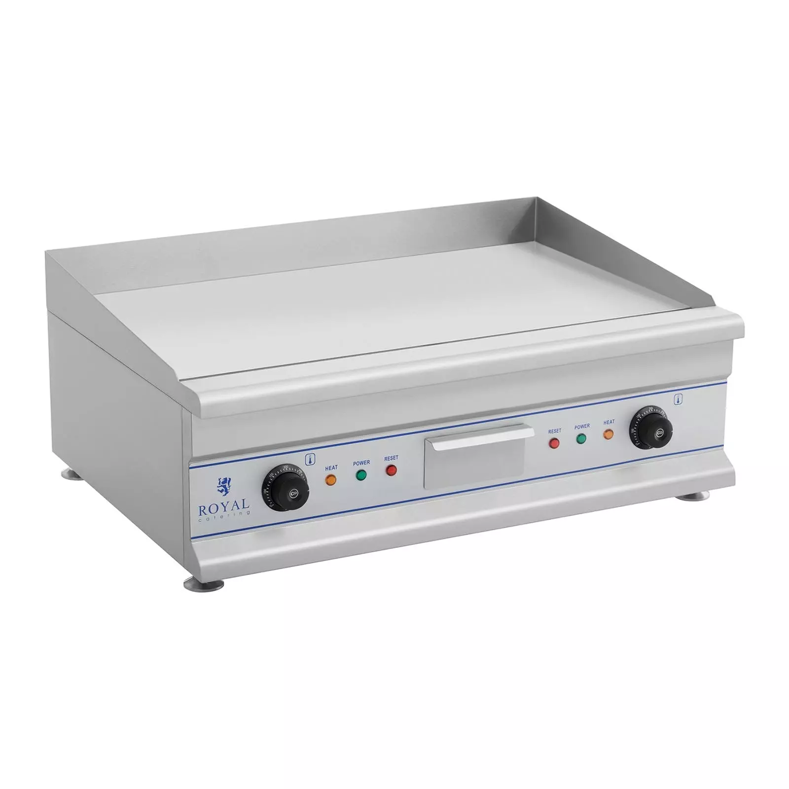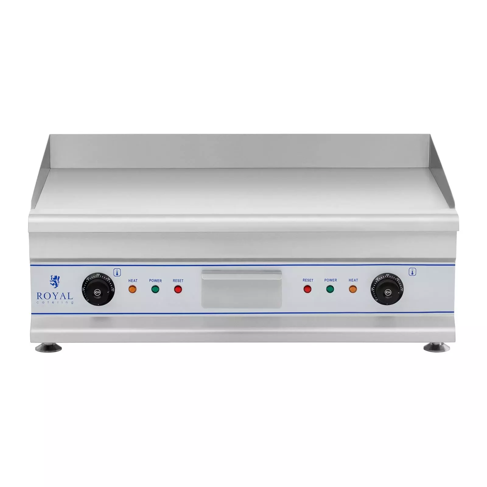 Doppel Elektro Grillplatte – 72,5 cm – glatt – 2 x 3.200 W Die Elektro-Doppelgrillplatte RCG 75 von Royal Catering ist ein professionelles Kochgerät, welches für Hotelrestaurants, Cafés, Fast-Food-Restaurants, Catering-Unternehmen, aber auch für den privaten Gebrauch konzipiert wurde. Die Grillplatte ist flexibel einsetzbar und kann durch ihr Gewicht von 44,30 kg sowohl drinnen als auch draußen verwendet werden.