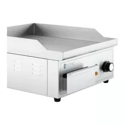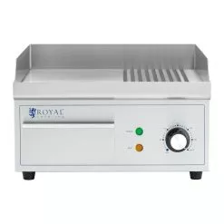 Mit der Elektro Grillplatte RCPG45-M aus dem Gastronomiebedarf von Royal Catering können Sie Ihre Gäste das ganze Jahr über mit leckeren und herzhaften Grillspezialitäten verwöhnen. Ob saftige Steaks und Burger, Fisch, Omeletts, Tortillas oder Gemüse – mit diesem Elektrogrill sind Ihrer Fantasie keine Grenzen gesetzt. Der Grill besticht durch geringe Rauchentwicklung sowie durch eine hygienische und sehr saubere Arbeitsweise. Außerdem eignet sich der Gastronomie-Grill erstklassig für den Einsatz in Großküchen – von Restaurants und Imbissen bis hin zu Foodtrucks oder Catering-Veranstaltungen.