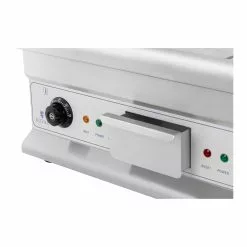 Elektro-Grillplatte – doppelt – 60 cm – glatt & geriffelt – 6.400 W Die Elektro-Grillplatte RCG-60GB von Royal Catering ist mit der verschieden strukturierten Oberfläche sowie den zwei separat einstellbaren Heizzonen das Multitalent unter den Gastronomie-Grills. Sowohl in Hotels, Cafeterien, Imbissen, Bistros, Bars oder Restaurants als auch bei Cateringevents oder im privaten Haushalt ist das leistungsstarke Gerät ein unverzichtbares Hilfsmittel. Elektrogrills und Grillplatten von Royal Catering – Ihrem Partner für hochwertigen Gastronomiebedarf und Kochgeräte – eignen sich ideal für die Zubereitung von leckeren Sandwiches, heißen Würstchen, knackigem Gemüse, saftigen Steaks oder Burgern und zahlreichen anderen Grillgerichten.