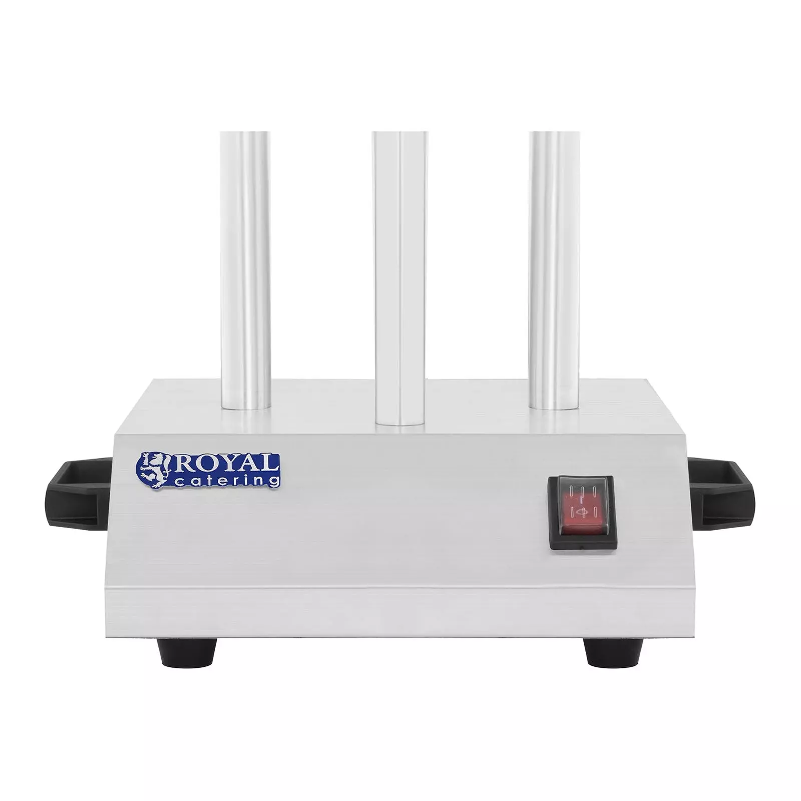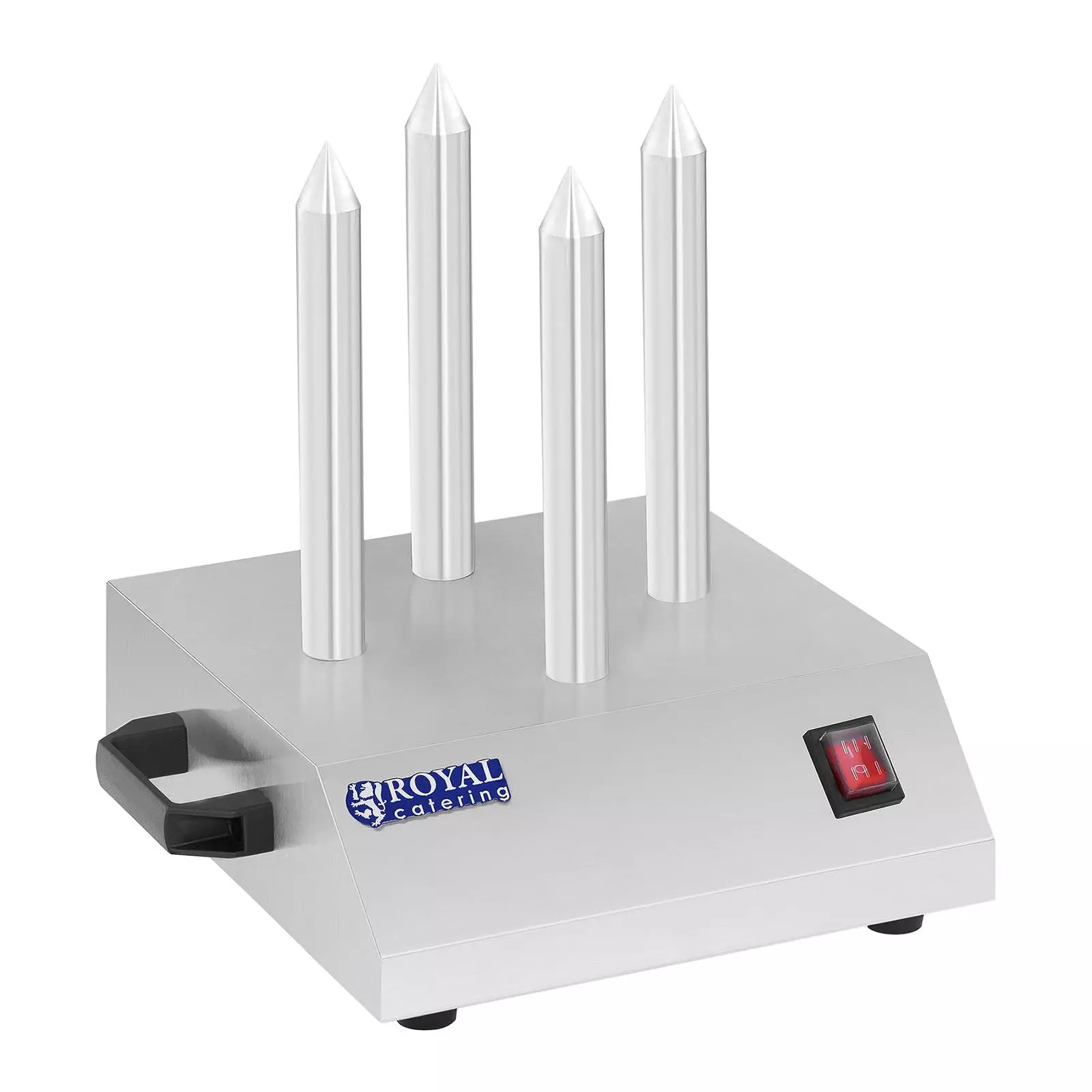 Hot-Dog-Spießtoaster – 4 Spieße Der Hot-Dog-Spießtoaster RCHW-200 von Royal Catering ist perfekt, wenn es um die schnelle und einfache Zubereitung von Hot Dogs, wie dem klassisch dänischen Hot Dog, die Berliner Ketwurst oder den chilenischen Completo, geht. Seine Edelstahlausführung eignet sich hervorragend für den professionellen Einsatz in der Gastronomie. Ob im Imbiss, Food Truck, in der Bar oder anderen Bereichen der Gastronomie sowie im privaten Haushalt, mit diesem Hot Dog Toaster sind Sie bestens ausgestattet.
