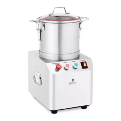Der Tischkutter RCBC-8.1 von Royal Catering wurde für den Einsatz in der Gastronomie konzipiert und überzeugt durch sein ausgesprochen hohes Arbeitsvolumen sowie mit einer Leistung von 550 W. Das Gehäuse sowie die Zubereitungsschüssel sind aus hochwertigem Edelstahl gefertigt und garantieren eine schnelle und einfache Reinigung. Vier rutschfeste Gummifüße an der Unterseite der Maschine sorgen für einen sicheren Stand auf der Arbeitsfläche.Das sichelförmige Zerkleinerungsmesser eignet sich ideal, um Lebensmittel zu zermahlen oder grob zu zerhacken. Die Klinge besteht aus Edelstahl und kann unbedenklich bei sauren oder salzigen Lebensmitteln verwendet werden. Der Tischkutter 8 l lässt sich einfach und intuitiv bedienen. über das Bedienfeld kann das Gerät ein- bzw. ausgeschaltet werden. Dabei erreicht es eine Drehgeschwindigkeit von 1400 U/min. Je nach Betriebsdauer werden die Zutaten grob, mittelfein oder fein zerschnitten.Der abnehmbare Zubereitungstopf bietet ein Gesamtvolumen von 8 l. Der transparente Deckel schützt vor möglichen Spritzern, reduziert den Betriebslärm und ermöglicht Ihnen volle Kontrolle. Die seitlichen Griffe am Topf garantieren einen sicheren und komfortablen Transport.Technische DetailsSpannung: 230 V Nenndrehzahl: 1400 U/minLeistung: 550 WKapazität: 8 lStromkabel: 1,6 mEmittiertes Rauschen: 65 dBMaterial Gehäuse: Edelstahl Anzahl Klingen: 1 Material Messer: EdelstahlLieferumfangTischkutter RCBC-8.1, Bedienungsanleitung
