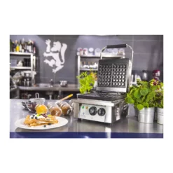 Waffeleisen – 2.000 Watt – rechteckig Frische und knusprige Waffeln schnell und leicht gemacht! Mit dem Waffeleisen RCWM-2000-E holen Sie sich den Duft frisch gebackener Waffeln direkt in Ihr Café oder Restaurant und verzaubern Ihre Gäste mit knusprigen und goldbraunen Waffeln ganz im belgischen Stil. Ob in der süßen Variante mit Schokolade und Beeren oder herzhaft mit frischen Kräutern und Schinken – mit dem Backgerät servieren Sie im Handumdrehen delikate und vielfältige Waffelvariationen in der Größe von 17 x 10 cm. Alles was Sie an Marktbedarf für den Alltag und darüber hinaus benötigen, finden Sie bei Royal Catering